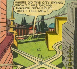 In 1977, the alien Mongor shrank Mid City and placed it into a bottle, similar to the way that Brainiac shrank the city of Kandor and done the same thing to it.
