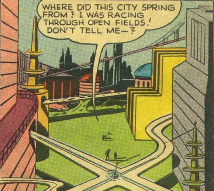 In 1948, Johnny Quick used his superspeed, and accidentally propelled himself into Mid City in the year 2048.