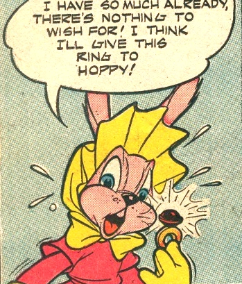 Millie is the girlfriend rabbit of Captain Marvel Bunny. Although possessing no powers she had all the strength in the world to shout the name "HOPPY!" and torment the World's Mightiest Bunny endlessly. Though she does not know of Hoppy's super-powered alter-ego she is as supportive as a bunny can be. Millie was created by Chad Grothkopf, first appearing in Fawcett's Funny Animals #1. (1942)