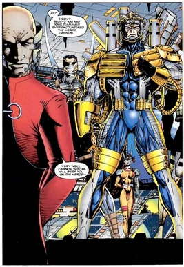 Mitchell Saunders, alias Cannon, was a member of Stormwatch. Cannon is a seedling, whose power enables him to fire awesome plasma projections.