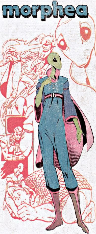 Morphea was a member of an insect-like humanoid race called the Canopeans, who were all born with telepathic powers and the ability to generate painful mental "stings" in people's heads. Her society was one where individuality was subverted for the greater good of the collective. Nevertheless, Morphea felt lonely among her own people, and she expressed her concern to the Hive Mother, who punished her for daring to ever express herself in any manner, even referring to herself in the first person.