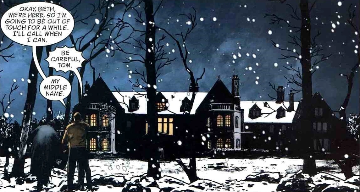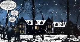The Moss Estate is located in or near Gotham City, with a river between it and the Gotham Village neighborhood. It has historically acted as the home of the Moss family but after the patriarch Dall was possessed during the ritual that brought Simon Dark to life the home became the headquarters of the evil Geo Populus society.