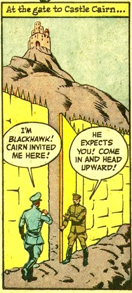 After sending two of the Blackhawks to investigate Cairn, Blackhawk flew to Mount Zerro to challenge Cairn. His squadron followed him there. After some false starts, a conclusive shoot-out took place, in which many of Cairns' troops were killed, and Cairn himself died from poison.