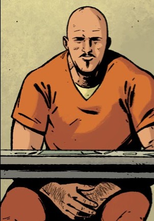 "Muscles" was a circus strongman inspired by a conspiracy theorist he was attracted to, to become the second Rorschach, killing those the theorist thought to be controlled by squids. He was captured by the FBI and sent to prison.