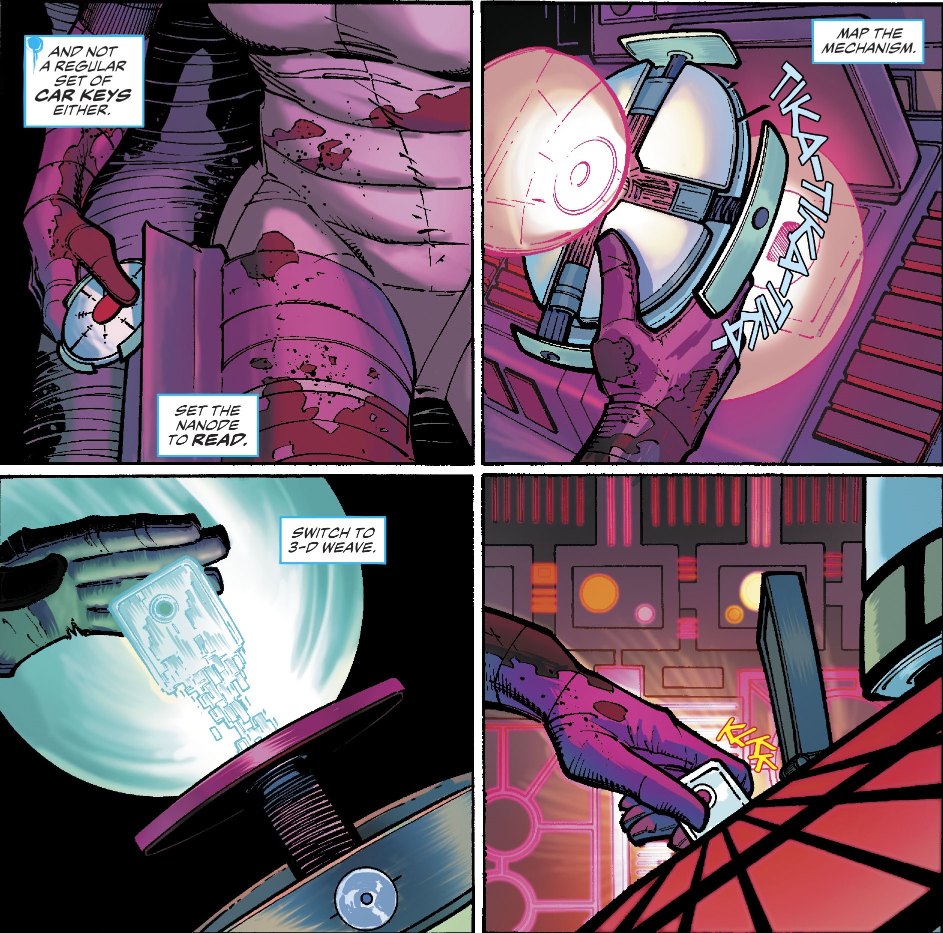 The Nanode function through nanotechnological interaction to reweave surrounding matter into specialized combat fatigues which serve and protect the user, all of which is operated via thought or motion control of the subject.[2] After completing one final operation to protect her burgeoning order's secrets and finances, Honor would rebuke both the armament and her old way of life after setting up a catastrophic domino effect that would change the face of the underworld completely.[3]