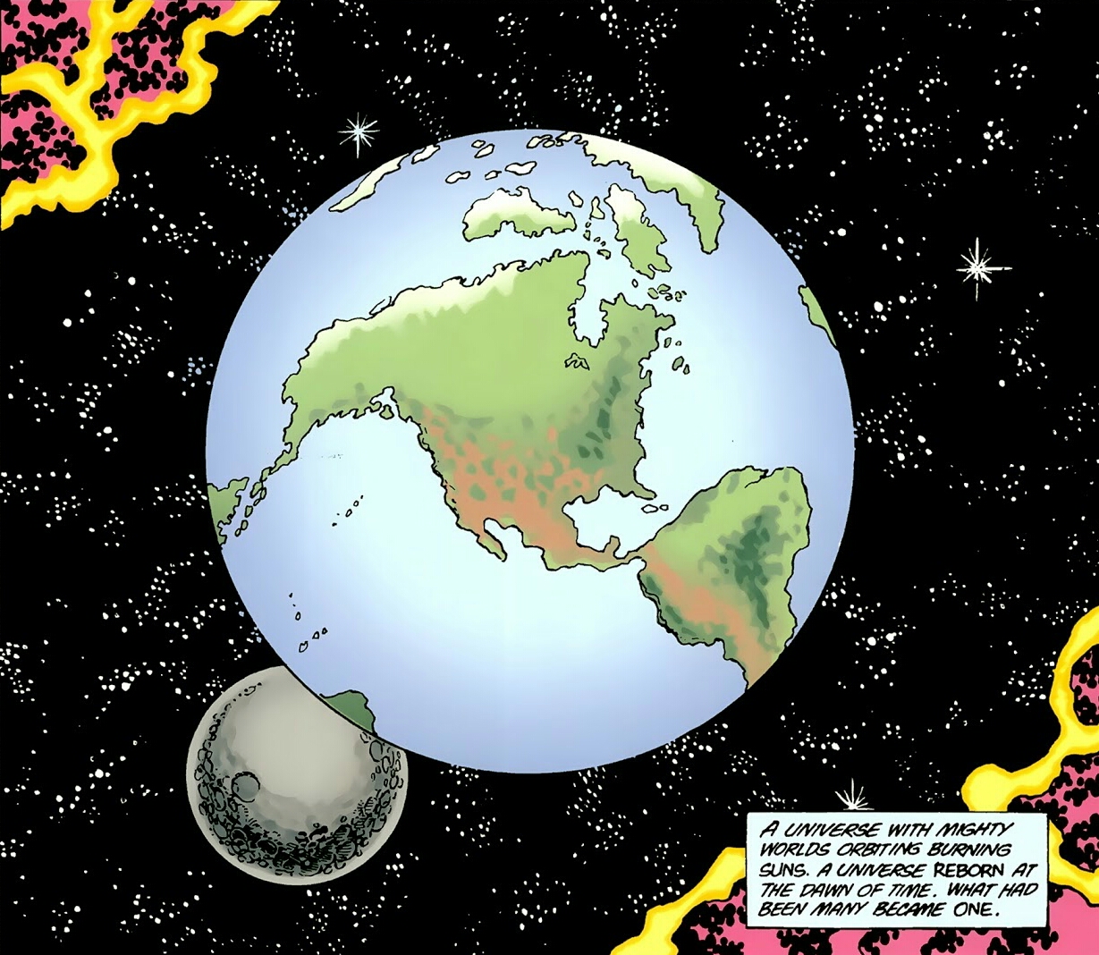 New Earth formed approximately 10 billion years after the Big Bang, following the destruction of the Multiverse in the Crisis on Infinite Earths and the restarting of a single positive matter universe (paired with the Antimatter Universe).
