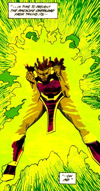 Jet refuses to let this happen, and she flies up into the sky using her magnetic abilities more powerfully than she ever has before... destroying every single enemy spacecraft. However, this takes far too great of a toll on her already diseased body, and she succumbs to death. Her heroic sacrifice saved the lives of countless innocents. Later, Extraño delivers her eulogy. R.A.M. explains he has received a communique from Captain Atom calling them all to a super-hero summit.