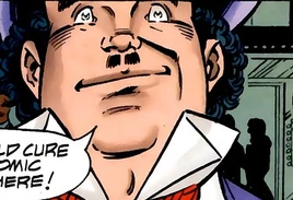 The Three Dimwits eventually wound up in Central City, where they had difficulty holding down jobs due to various boneheaded mistakes they would make. One day, after all three had been fired by their respective employers, they decided to built a mechanical brain to tell them how to make money. Their interpretation of the brain's advice soon had them attempting to sell dirt dug up from their own backyard. However, gangster Toughy Boraz had hidden loot in their yard, and happened to be coming by to collect just as the Dimwits had begun their sale. When they discovered the loot, he pulled on a gun on them. However, they summoned the second Flash, who brought the ganster to justice. With the reward money from Boraz's capture, the Dimwits started an inventing company and purchased a car. Fed up with Central City traffic, they decided that their first invention should be a flying car, which they created by placing a Mexican jumping bean underneath their car's transmission. However, the car's maiden flight proved to be disastrous, as the Dimwits were unable to control it and soon found themselves dangling from the jumping car. Passing ganster Slick Saxon took the opportunity to steal their vehicle as he fled from a crime. The Flash again came to the rescue, bringing the car back to Earth and bringing Saxon to the police.[3]