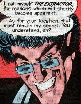 - The Extractor's word balloons were drawn with dashed lines and mixed-case lettering, presumably to indicate that he was always whispering.