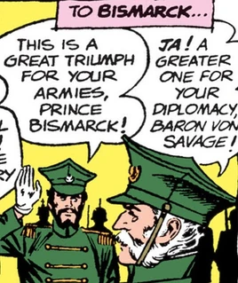 In 1872, Otto von Bismarck was confronted for his unbelievable acts by his aide, Helmut von Conrad, who was controlled by Dick Amber and the Atom. Ordering his men to kill his aide, Bismarck was beaten up by the Atom, who, together with Helmut, escaped.[2]