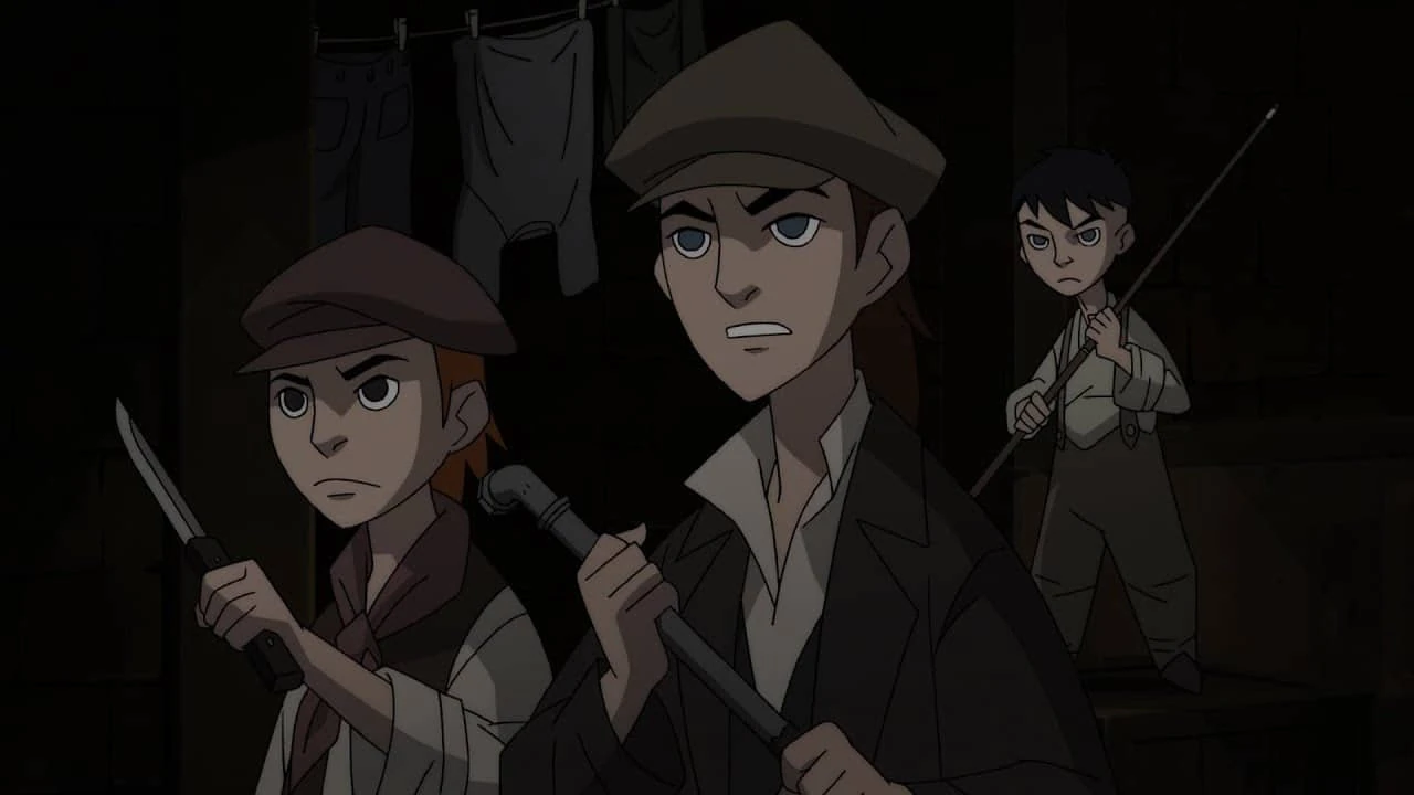 After Batman's fight with Jack the Ripper, Alfred and the kids arrived at the Gotham World Fair in a horse carriage to rescue him and Selina Kyle. Alfred decided to take the three kids in and have Bruce take over their custody.