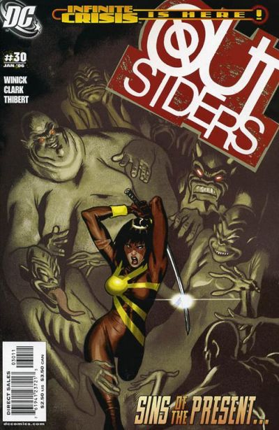 Outsiders (Volume 3) #30 is an issue of the series Outsiders (Volume 3) with a cover date of January, 2006. It was published on November 2, 2005.