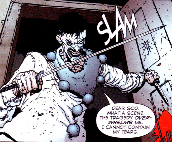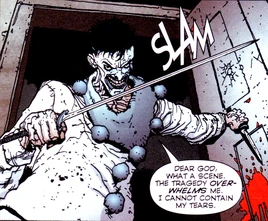 Pagliacci was "a post-human thrillkiller with a body count in the triple digits". This serial killer was one of the deadly villains assembled by Lord Defile to discuss a potential alliance, a meeting that accidentally turned into the worst massacre in New York City's history.