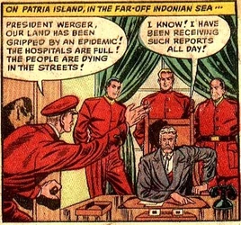 Patria Island is in the far-off Indonian Sea, located directly east from Blackhawk Island. In 1949, in a surprise attack, the entire island was depopulated by germ warfare, conducted by General Maris.
