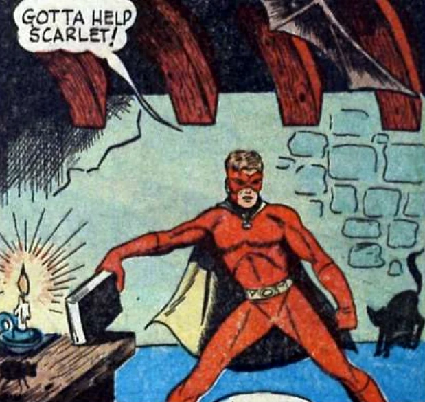Brian Butler's legal secretary Miss Wade (who knew Butler was Mister Scarlet) didn't think it was a good idea for Pinky to be a superhero sidekick, and constantly tried to prevent Pinky from going with Mister Scarlet, but he always outwitted her. Mister Scarlet was glad to have Pinky along, but did forbid Pinky from investigating or crimefighting solo; sometimes Pinky followed those instructions, and sometimes he didn't. In his civilian life, Pinky Butler often acted as a gofer and messenger for Brian Butler's law firm.