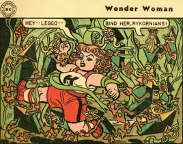 In the 1940s Rykornia was trapped in the upper atmosphere of the Earth by gravity and the Plant People attempted to invade the United States. The speed with which their forests grew and the difficulty in chopping them down looked promising at first, until Wonder Woman arrived with a harvester made by Amazonian scientists which chopped easily through the stalks of their immobile brethren and so terrified the Plant People that they never attempted to settle the earth again.