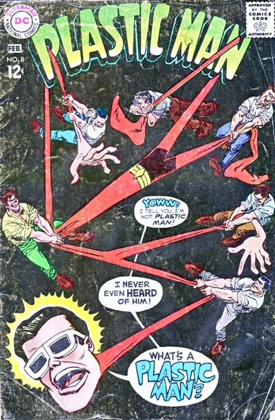"The Unforgettable Wot's-Iz-Name!": The synopsis for this issue has not yet been written.Plastic Man (Volume 2) #8 is an issue of the series Plastic Man (Volume 2) with a cover date of January, 1968. It was published on November 21, 1967.