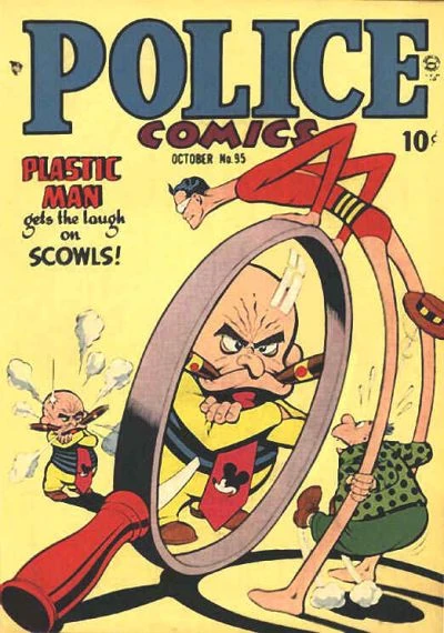 "Plastic Man: "Wanted Dead, Not Alive: Plastic Man"": The synopsis for this issue has not yet been written.Police Comics #95 is an issue of the series Police Comics (Volume 1) with a cover date of October, 1949.