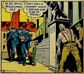 After the end of the Second World War, and after generations of oppression, the nation of Porvay was free once more, and it established a liberal government. An international criminal made a series of attempts to steal a world-famous relic from the tiny nation, and was thwarted and arrested by the Blackhawk Squadron.[1]