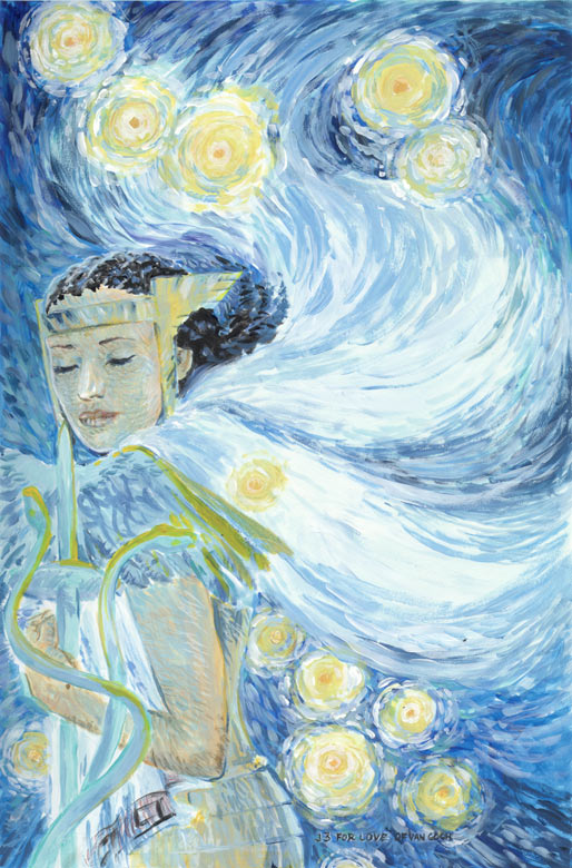 Promethea is the reincarnating spirit of a Egyptian girl, made into the embodiment of imagination and magic. She is a demi-goddess that has used host bodies to provide the world with creativity.