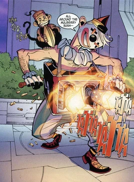 Punchy was involved in the battle between the Jokerz, Animal Kingdom, and Justice League Unlimited. He attempted to knock out Warhawk, only for Green Lantern to deflect his rigged jack-in-the-box.[1]