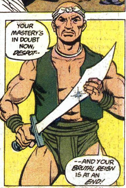 Fire Jade sensed his unease in Lord Aquamarine's rule, and armed him with a mystical sword to rebel against his lord. He quickly gained a following. After besieging the castle, Quaar managed to slay Lord Aquamarine.