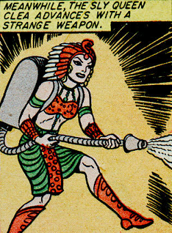 Queen Clea is the warmongering monarch of Venturia, a nation located on either a subterranean or underwater continent. Her campaigns against rival nation Aurania become felt on the Earth's surface and made her an enemy of Wonder Woman. As such, she became a member of Villainy, Inc.