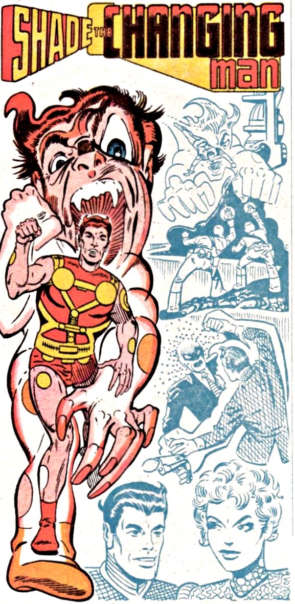 Rac Shade, alias Shade, the Changing Man is a secret agent of the world in the Meta-Zone, a dimension near that of Earth. He uses the illusion-creating and body-defending illegal M-Vest to alter his appearance.