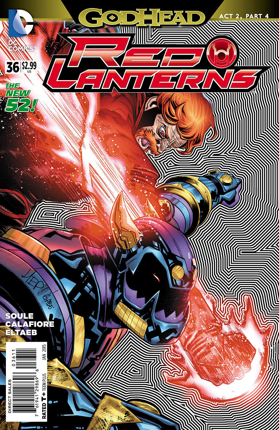 Red Lanterns #36 is an issue of the series Red Lanterns (Volume 1) with a cover date of January, 2015. It was published on November 26, 2014.