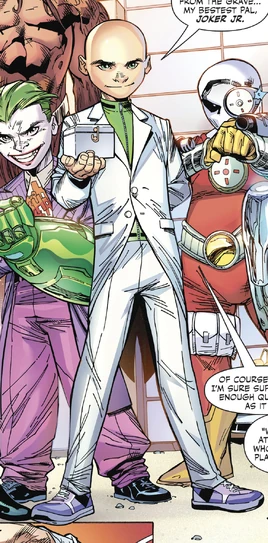 He then attempted to kill the Puppeteer, who had outlived his usefulness, before Jon jumped in the way. He still killed the Puppeteer, however. Rex was then surprised when the Super Sons broke out, and it was revealed that Joker Jr. was a traitor to the Gang. He brought Brainiac 6 and Shaggy Boy with him to apprehend the boys, and sent Ice Princess and Kid Deadshot to get him.