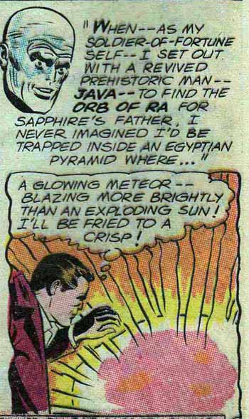 Millennia later, Rex Mason, a soldier for hire, was contracted by Simon Stagg to find the Orb of Ra. When he found it, his cohort, Java, stole it and left Rex in the light of an ancient meteor. This meteor transformed Mason into Metamorpho, the Element Man.[3][4]