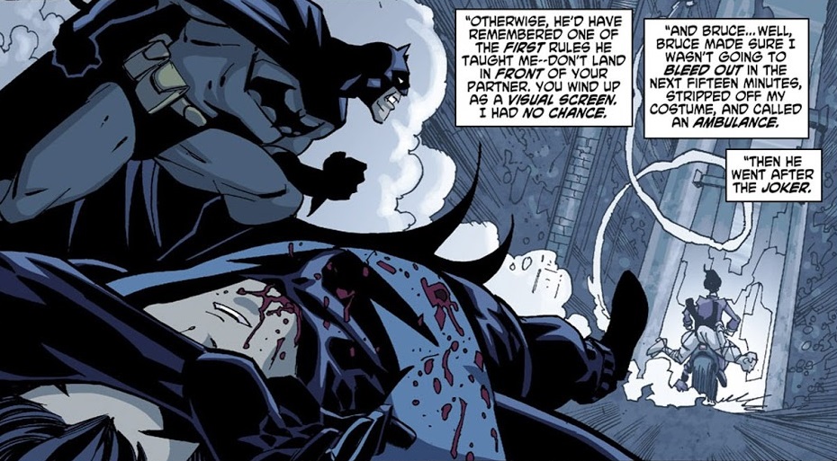 When The Joker kidnapped Alfred Pennyworth, Nightwing teamed-up with his estranged mentor to rescue him. Unfortunately, Bruce hadn't worked with a partner in a while and inadvertently let Nightwing get shot. He prevented Dick from bleeding out, removed his costume, and called emergency services, but even after he rescued Alfred, he never visited Dick in the hospital. Once he was released from the hospital, Dick retired from superheroics and became an acrobatics instructor.