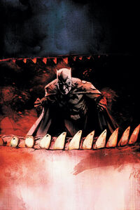 Robin and Nightwing joined Batman on his final confrontation with Jean-Paul, but they were sidetracked by the bodyguards of Penn Selkirk, who were trying to kill Catwoman.[33] After dealing with them, they witnessed the fight between Bruce and Jean-Paul until Bruce was apparently killed inside an exploding Batmobile and they were confronted by Jean-Paul, whose armor had turned red.[34] Enraged after Bruce's apparent death, Nightwing attacked Jean-Paul and tried his best to defeat him, but his efforts were futile as he was overpowered by the maniac.[35]