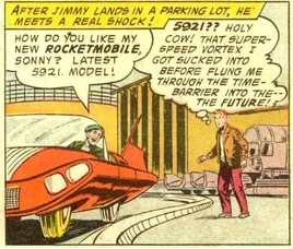 The Rocketmobile was a type of car that ran on a rocket engine. They were common on the streets of Metropolis during the 60th Century.