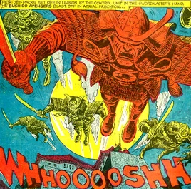 He is based at Black Heron Castle, situated northern island of Japan. He also built a robot, Daisho. Samuroids have jet packs, indestructible armor, and electrified swords, along with being fully trained by Daisho in the art of Bushido. They were so dangerous that not even the Flash could stop them with his power alone, at the time.[1][2]