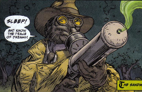 The Sandman's Gas Gun is a specially-designed hand-held weapon that pneumatically produces blasts of sleeping gas.