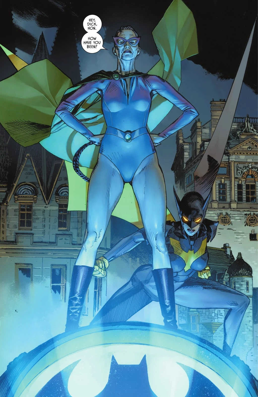 An elder Catwoman teams up with Batwoman.