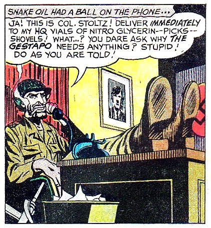 Snake-Oil was one of several convicts held prisoner in a United States army stockade in the early years of World War II. Lt. Benjamin Hunter selected Snake-Oil to become part of a Special Forces unit code-named Hunter's Hellcats. Although lacking in moral fiber, the former con-man faithfully served under Lt. Hunter throughout the remainder of the war.