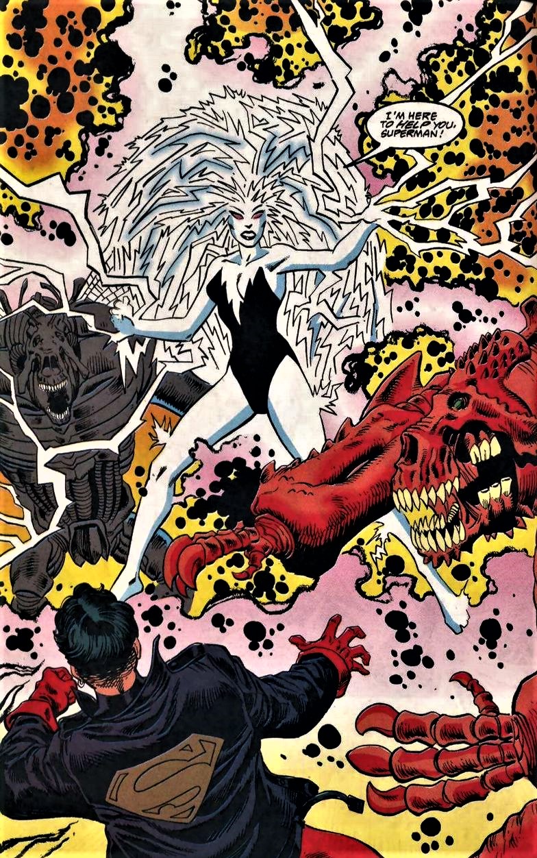 Sparx is a New Blood metahuman super-hero and vigilante with the ability to control electrical fields. Her powers were activated during the events of Bloodlines when she was bitten by the parasite Gemir and her meta-gene was activated. This turned her into living electricity. She has been a member of the Blood Pack, the Force Family and the Ravers. Sparx was created by Karl Kesel and Tom Grummett, first appearing in Adventures of Superman Annual #5. (1993)