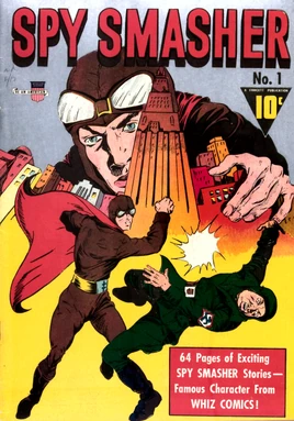 Spy Smasher was published by Fawcett Publications from 1941 until 1943. Spy Smasher was actually Alan Armstrong, a gadget oriented secret agent created by Bill Parker and C.C. Beck. Following a lawsuit in 1953, Spy Smasher became the property of National Periodical Publications (the future DC Comics). He appeared irregularly during the Pre-Crisis Shazam revival projects, but became a steadfast supporting cast member in the 1990s with the title, The Power of Shazam!.