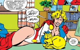 Since the dissolution of the Justice League's international charter, the cat has since taken up residence in Power Girl's quarters at JSA Headquarters in Battery Park, Manhattan. Power Girl took it with her when she eventually moved out of the base.