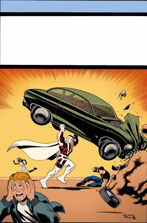 - The cover to this issue is an homage to Action Comics #1 (1938), the first appearance of Superman.