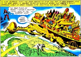 It was built by Highfather and Atinai to be the ultimate civilization where Gods could come to realize their true potential.[1] Although many live there, the planet's surface is inhabited by another group named the Primitives who choose not to leave the untamed wilderness.[2]