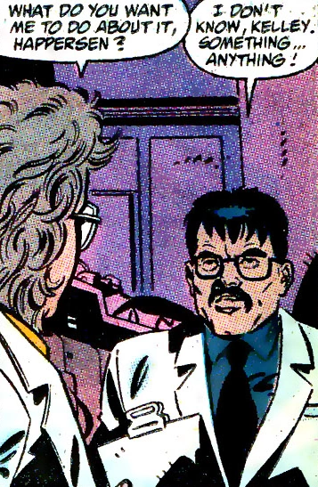 Sydney Happersen is the top scientist at LexCorp, operating out of Metropolis. Loyally serving Lex Luthor for many years as one of his many personal assistants and a brilliant scientist, Happersen specializes in clone technology and has been involved in his boss' various schemes against Superman. He would ultimately meet his fate after accidentally electrocuting himself to death when he pressed a detonation switch.