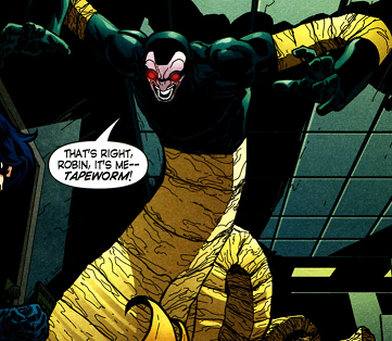 In retaliation for the loss of his friend and the humiliation of defeat Tapeworm joined up with the group Dodge gathered so that various criminals could get revenge on Robin.[3]This led to his capture and imprisonment when the group was defeated. [4]