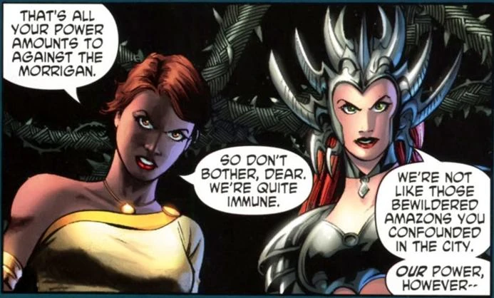 The Morrigan is a triumvirate of War Goddesses who plan to exterminate every last Amazon.