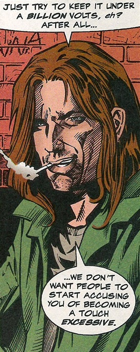 As Mayor Perry's policy was to ignore the conflicts in Brick City, Police Captain Latimer assigned Colavito to assist Black Lightning's activities in the neighborhood.[1] Colavito ran interference between Lightning and the police and kept Lightning aware of street talk. Colavito began to suspect Black Lightning was being too harsh on criminals and was one of the first to turn on Lightning when he was framed as the serial killer Sick Nick.[2] He later changed his attitude when Batman provided evidence clearing Black Lightning.[3]