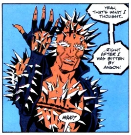 Tom O'Brien was a young working man in Metropolis who was forced to drop out of high school to support his family, and became a community figure in his neighborhood, becoming friends with John Henry Irons. While Tom was one of the strongest men in his neighborhood, he was captured by the alien parasite "Angon" who accidentally activated his metagene in an attempt to drain and feed on his spinal fluids. Waking up in a pile of other bodies (other victims of Angon), Tom found himself entirely covered in strange blades all over his body. Although at first in his confusion he believed himself to have murdered the people, and ran into some trouble with the MSCU, he would quickly team up with Steel in an attack against Angon, and although they failed to kill it, they did drive it out of Metropolis.