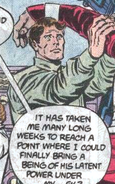 When the US Government decided to bring Project Cadmus under more thorough control Dr. Thompkins was among the personnel forced to leave. He took his "son" with him but was unable to convince the government to allow the boys' "pet" Angry Charlie to leave the facility with them. His departure upset Kon-El (Superboy) as Kon had only recently been convinced to return to the project and now had nowhere to turn to for alternate lodging. With those he trusted being forced away and the project moving towards treating clones and DNAliens like government property rather than individuals the timing made it seem like he'd been tricked into coming to a place where he wouldn't be treated as a person. Golden Guardian elected to remain with the project when given the choice rather than go with Thompkins and the others as Superboy would otherwise be left alone with no support.[5][6]
