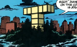 It was the site of the first and second Titans Tower, and was the base of operations for the second incarnation of the Teen Titans. Following the destruction of the first Titans Tower during the "Titans Hunt", New York City councilwoman Elizabeth Alderman initiated an injunction, barring the Titans from using the island. Shortly thereafter, a conqueror from an alternate timeline named Lord Chaos erected a pyramid temple on the island, which became his base of operations during the "Total Chaos" affair. After the Titans relocated to San Francisco, California, Deathstroke the Terminator forged his own team of young heroes, Titans East, and erected a macabre effigy of the original Titans Tower on the island.